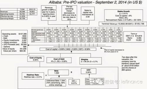 2014年5月的时候,国外著名投资网站Seekingalpha分析师,纽约大学金融系教授、传奇估价专家阿斯沃斯 达摩达兰(Aswath Damodaran)给出了他的分析估值《阿里巴巴:中国式财富故事》("Alibaba: A China Story with a profitable ending?" )。