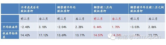 7、解禁前两个月内的股权质押行为对解禁后的股价有微弱影响。而解禁前半年内胆股权质押行为对解禁后的股价基本无影响。