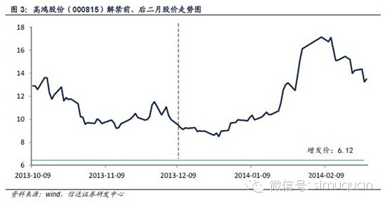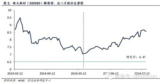 来源:信达证券中小市值组2014年10月27日报告《定增解禁的市场和行为分析》