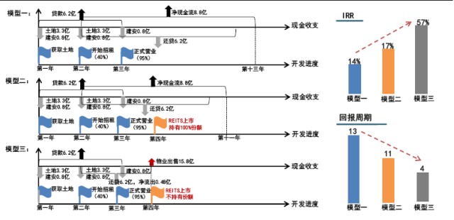 模式一:在没有REITS的情况下我国商业地产企业的IRR和投资回报周期;