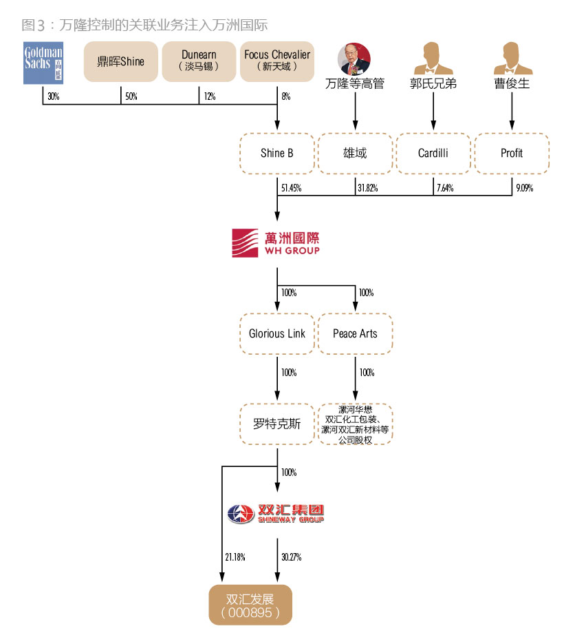 首先看双汇管理层的核心关切所在。此时,双汇管理层已经间接持有双汇的部分股权,但仍少于鼎晖所控制的比例。即使把常年合作伙伴所控制的股权算上,也没能超过鼎晖。这意味着一旦鼎晖行使大股东权力,管理层的意志将无法彻底地落地。双汇管理层必须要确保自己对双汇业务话语权的绝对影响。为此,万隆实施了曲线救援的策略。