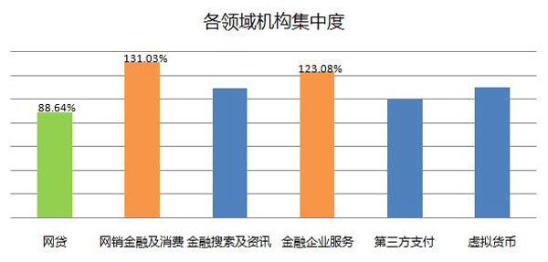 从上面表格和图中都可以看出,网销金融及消费、金融企业服务(互联网金融2B服务)这两个子领域的机构集中度明显较高。机构集中度高的意思是指:在网销金融及消费领域中38起公开市场化投融资案例仅有29家机构参与,金融企业服务中16起公开市场化投融资案例仅有13家机构参与。这说明上述两个领域中,机构参与的广泛程度相对较小,融资者最好有针对性地寻求融资。而网贷领域则刚好相反,39起公开市场化投融资案例中就有44家投资机构,是所有子领域中(除数据过小的众筹外)投资机构参与最广泛的领域。