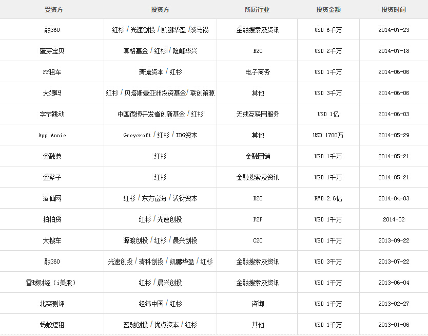 红杉凭借15起互联网金融投资坐上了第二把交椅。红杉的投资分散在5个子领域内,重点也很明确,金融搜索与网销金融类项目为主,网贷只有拍拍贷与我来贷。但如果从红杉今年刚投资了一家保理公司(鑫银国际)的情况来看,未来再投P2B网贷,做供应链金融的可能性也不小。
