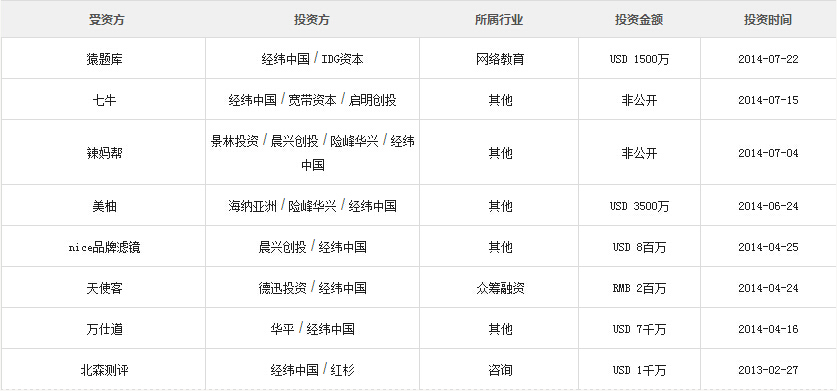 给整个创投圈儿敲警钟的经纬也没少投互联网金融,但如果我们把点名时间排除在互联网金融之外的话,经纬就只投了服务于C端理财的网贷和网销金融。和红杉一样,经纬也投了保理公司(阜鼎汇通),同时,同属经纬投资的积木盒子开始搞保理项目。