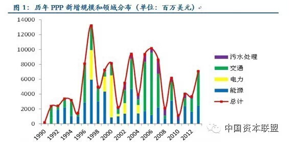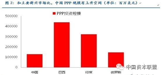PPP模式具有较大的发展潜力。一方面,2013年中国PPP项目的累计总投资为1278亿美元,和同类型新兴市场比有较大的差距。另一方面,2013年新增的PPP投资额仅为7亿美元,而2013年城投债的发行量则高达9512亿元,若PPP模式成功替代城投主导的融资模式,其发展空间巨大。
