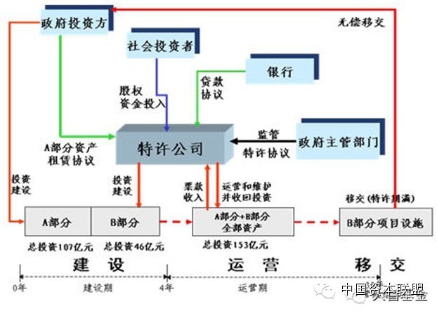 PPP模式的一个典型结构是公共部门与中标单位组成的特殊目的公司签订特许合同,由特殊目的公司负责融资、建设及经营。这种融资形式的实质是政府通过给予私营公司长期的特许经营权和收益权来换取基础设施建设,以解决政府的财政困境。