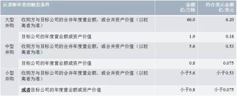 说明:收购方和目标公司的营业额或资产价值均指集团层面(即包括关联方)的合并营业额或合并资产价值,并且均为南非境内的营业额或合并资产价值。
