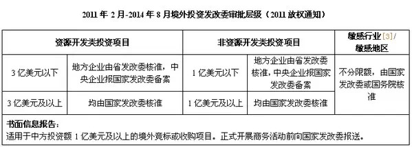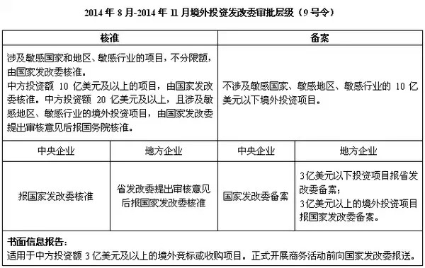 鉴于10亿美元以上的超大型境外投资项目数目毕竟比较少,此时“备案为主、核准为辅”的发改委审批制度离实质“备案制”仅有一纸之隔。具体如下: