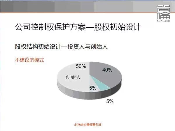 如果您迫不及待的想了解融资过程中股权结构设计,那您是否正准备融资,或者正接受融资呢?不论是第几轮融资,相对其他因素来说融资期间的股权结构变化是对公司控制权影响最大的,因为融资协议规定的事项,不但涉及本轮融资之后权利的变化,还涉及下一轮融资,投资人,创始人退出的权利安排。注:如果您的公司在成立之初的股权比例就有问题,那需要创始人之间调整好之后再谈融资计划。