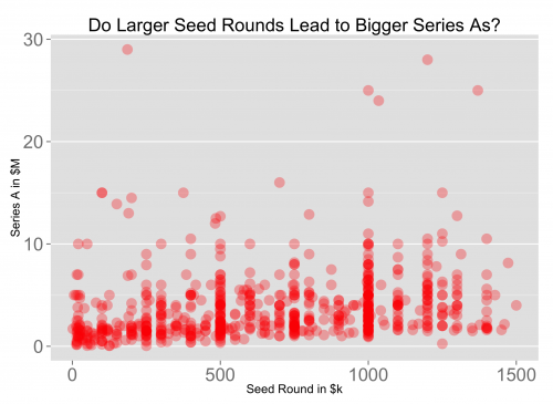 看到他的帖子后,我不禁好奇:一个公司在种子期时获得较高的融资,是否会成为它在A轮融资得到的更高融资数额的一个指标呢?这两者之间有任何联系吗?换而言之,种子期的巨额投资,是否能成为公司日后融资时抬高资金总额和交易前估值的筹码?