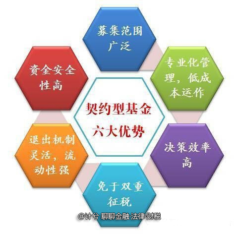 与公司制或合伙制基金相比较,契约型基金不设公司或合伙企业等该类需在工商行政管理机关登记注册的实体,投资人的身份、管理人与托管人的法律地位与职能等均由各方共同签署的基金合同进行约定。从而可以省去复杂的工商登记流程。同时,由于无需借用有限合伙或者公司的外壳,其投资人的人数方面会更加灵活。