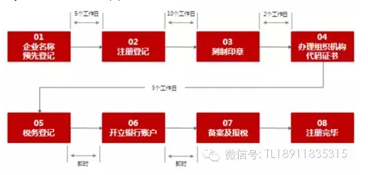 投资完成后,创业企业若已经注册公司,则直接增资;若没有注册公司,则新注册公司并办理工商变更。公司注册流程如下图所示: