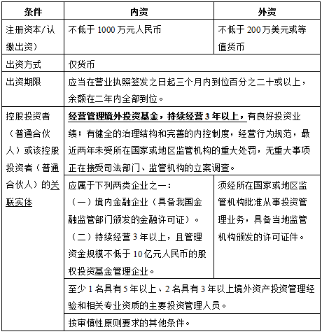 1.1 QDIE试点办法直接规定已获得外商投资股权投资企业试点工作领导小组批准的外商投资股权投资管理企业,符合下列条件之一的,则可直接申请开展QDIE试点: