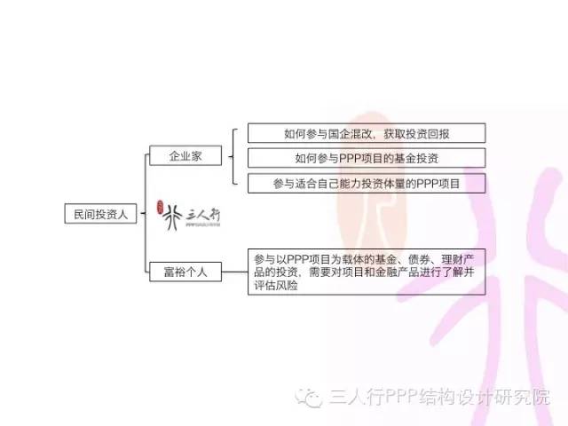 图图细说:漫聊PPP市场 来源:三人行 图图 作者: 日期:2017-07-18 PPP究竟是多大一盘棋?图图掐指一算,没算出来……但是图图在平日探索中早已发现,PPP的市场根本没有那么简单!PPP带给政府和社会资本的是新的合作机制,而与此同时,也带给了这个高手如云的社会无限机会!看看图图的梳理,各位有何高见?