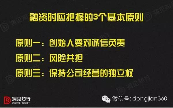 原则一:创始人要对诚信负责。投资协议里面有很多约束条款要求创始人诚信,这点创始人理应承诺。保证陈述真实和完整,保证以后不和公司竞争,不侵占、挪用公司财产,等等。