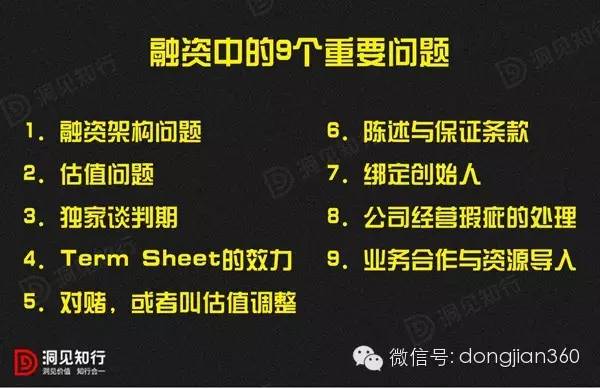 大家知道,TermSheet一般都是没有法律效力的,但不出意外的话,一般都会得到遵守,并且成为后面正式协议的基础。所以TermSheet还是要给予足够的重视,自己这边能想到的需要体现到正式协议的,尽量在TermSheet中要体现。