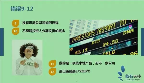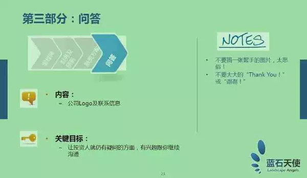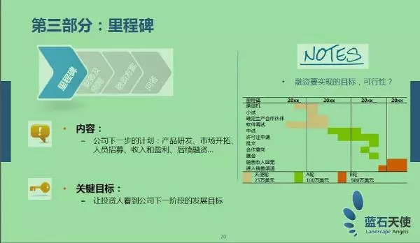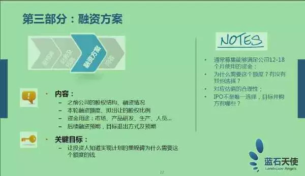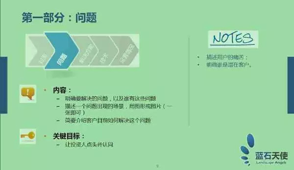 ? 第 9 页:财务预估,融资信息——你的融资是为了什么?有了融资能在半年/一年内实现什么样的增长?融资到手怎么花,这些就是细节问题了,与产品关系不大,但仍然要合理。出来融资,最好别是因为活不下去了,而应该是追求更快的成长。