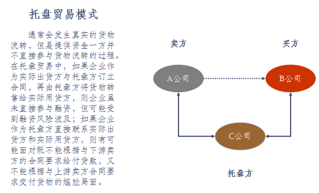 银行在开展贸易型融资这种融资形式时,他其实是个别央企共同开展的,而央企主要集中在央企和物流企业。