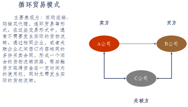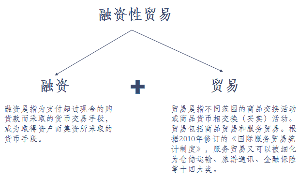 融资性贸易,是指参与贸易的各方主体在商品及服务的价值交换过程中,依托货权、应收帐款等财产权益,综合运用各种贸易手段和金融工具,实现短期融资或信用增持目的,增加贸易主体的现金流量。因此,融资性贸易本质上应基于真实的贸易关系,并通过在贸易各个环节中金融工具的运用,为促成贸易而进行融资,是“贸易+融资”的组合,并非简单的贸易行为或是单纯的融资服务。