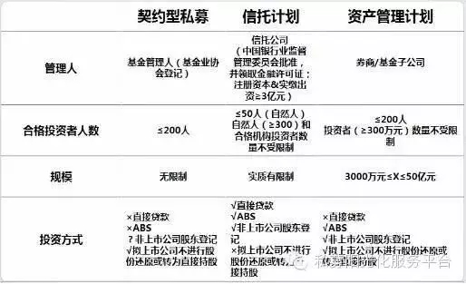对比常见的资管计划,相对于信托来说契约型私募的投资人数占有优势。但契约型基金相对于信托计划、资管计划亦存在三个明显劣势,首先由于不具备独立法人资格,不能直接做股权登记;其次没有金融许可证,不能直接放贷款;最后由于相关资格并未放开,无法做ABS管理人。