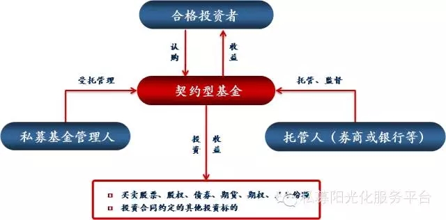 契约型基金,是指把投资者、管理人、托管人三者作为当事人,通过签订基金契约的形式而设立的基金。其中,基金管理人依据法律、法规和基金合同的规定负责基金的经营和管理运作;基金托管人负责保管基金资产,执行管理人的有关指令,办理基金名下的资金往来;资金的投资者通过购买基金份额,享有基金投资收益。
