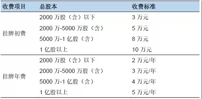 挂牌初费及挂牌年费明细表: