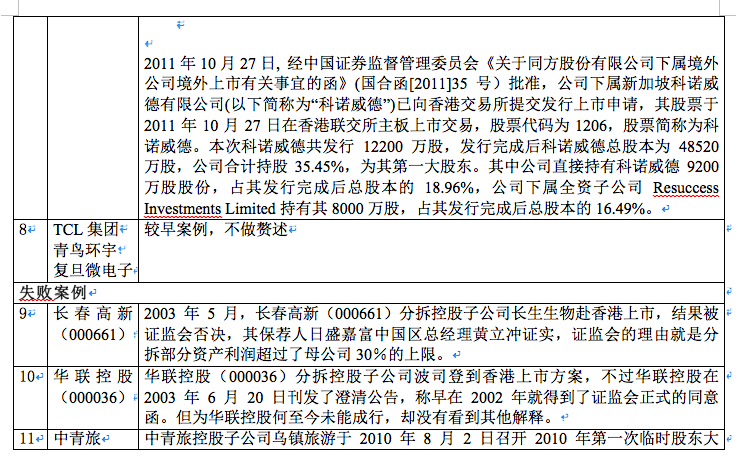 母公司为国内上市公司,分拆子公司在中国上市Mother company is listed in China and subsidiary launches IPO in China