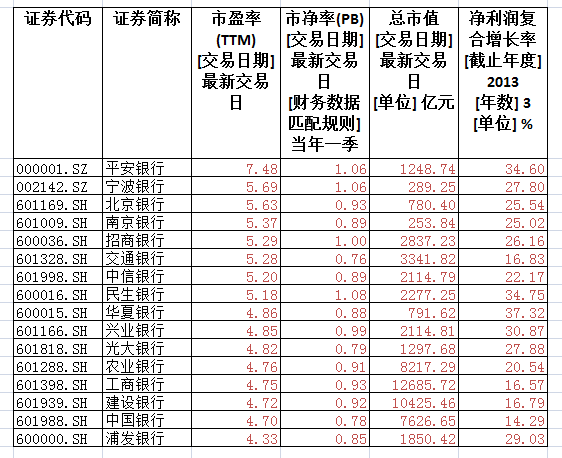 上述我们通过三个方面分析了公司经营的水平高低,最后,我们要看看他们在资本市场上的估值水平。因为即使公司再好,我们也要考虑其价格。(就好比我们都知道苹果手机性能出色,但这并不妨碍小米手机热卖,因为什么,因为更高的性价比)。为了能更客观的反映公司的价格高低,我们选取了市盈率和市净率两个指标来考虑。这里,我们要说明下市净率对于银行业,是一个相当有份量的估值指标。