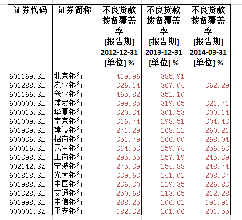 从历史数据可以看出,不良贷款率最高的为农业银行,但其不良贷款率近年来已有所下降;最低的为北京银行。从相对增速来看,兴业银行、中信银行的不良贷款率增加较快,增速均超过了50%,这代表了一定的风险。