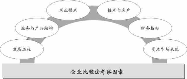 比较法是了解企业优劣势的最直接的方法。通过同行业或相似的企业进行对比分析,能够清晰和客观的了解投资标的在行业内所处的地位及企业自身的优劣势,例如通过多家公司的毛利水平和净利润水平进行对比分析,可以初步判断我们拟投企业在行业的话语权及经营管理水平的高低。实践中,获取真实有效的企业信息是比较法的关键,一般通过与同行业的上市公司进行对比。一般对比分析主要从发展历程、业务与产品、商业模式、技术和客户、财务指标等几个方面进行,如下图所示。