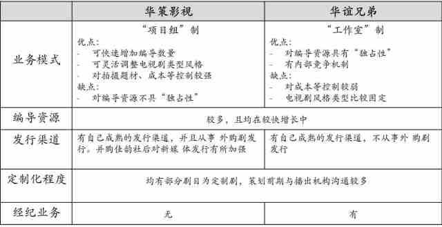 通过如下华谊兄弟和华策影视两家影视企业对比分析举例