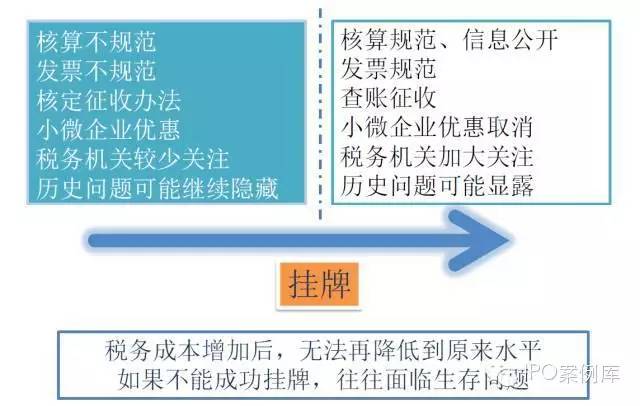 通过一个简单的例子就可以了解到挂牌前后的税务成本的增加问题,具体如下图所示: