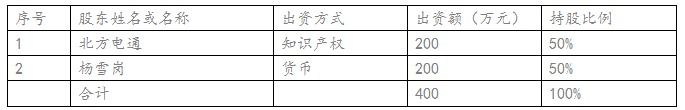 其中知识产权出资已经北京方诚会计师事务所有限责任公司出具方会评报字(2000)第034号《关于北京部北方电通电气技术有限公司“SAS500系列综合终端单元”“住宅小区智能化系统远程抄收部分”两项非专利技术资产评估报告》予以评估。并经北京数码会计师事务所有限公司出具数开验字第743号《验资报告》验证。