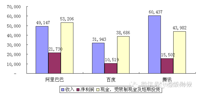 本文汇总了三家2013年的财报信息,从收入,净利润,现金三个层面比较了下面三个公司(注,阿里的财务年度与其他两家不同,为了可比性,这里的利润数据是拿其2013年Q1-Q4数据加总而得,并非其披露的2013年财年利润)