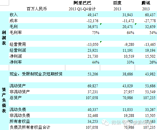 随着阿里巴巴的招股说明书的公开,这下BAT三家的资料基本都全了(除了支付宝的资料尚未得知)。