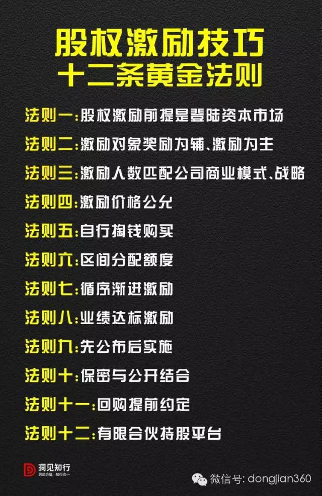 概念其实简单,但如何设计一套行之有效的股权激励方案,对于很多新三板企业是非常困难的!笔者过去几年接触了大量的中小民营企业家,他们往往喜欢把资金投入在固定资产上面,而对于公司人才的投入,尤其股权的投入还是少之又少,当然很大一部分原因是不知道如何设计股权激励,那么本文结合多年的亲身实际经验,总结了中小民营企业在做股权激励的12条黄金法则: