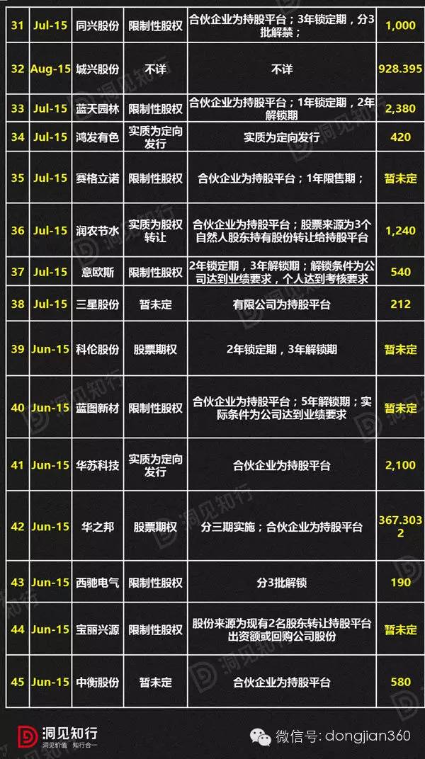 如无特别备注,上述股权激励的股票来源均为公司向激励对象或持股平台定向发行股份,募集资金用途均为补充公司流动资金。