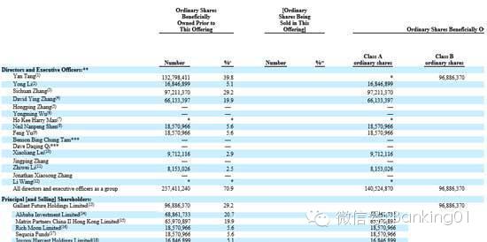 阿里巴巴通过Alibaba Investment Limited持有68,861,733股,占股比例为20.7%。经纬创投通过Matrix Partners China II Hong Kong Limited持有65,970,897股,持股比例为19.9%。红杉 和云峰基金各持有18,570,966股,持股比例均为5.6%。