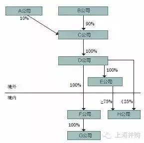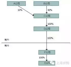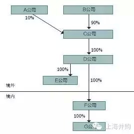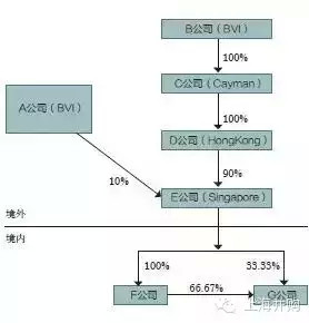 A公司(BVI)、B公司(BVI)、C公司(Cayman)、D公司(Hong Kong)、E公司(Singapore)均为境外公司,F公司和G公司为境内公司,上述公司之间的股权结构如下图: