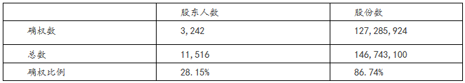 经核查,截至2013 年9 月30 日,本次股份确权结果如下: