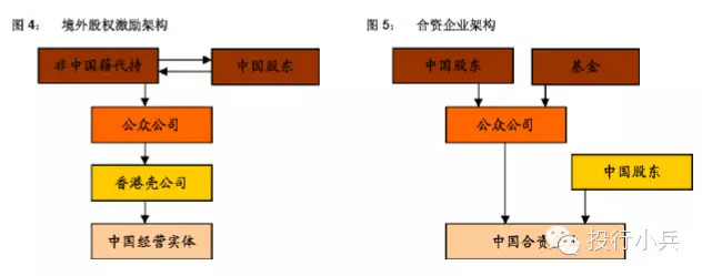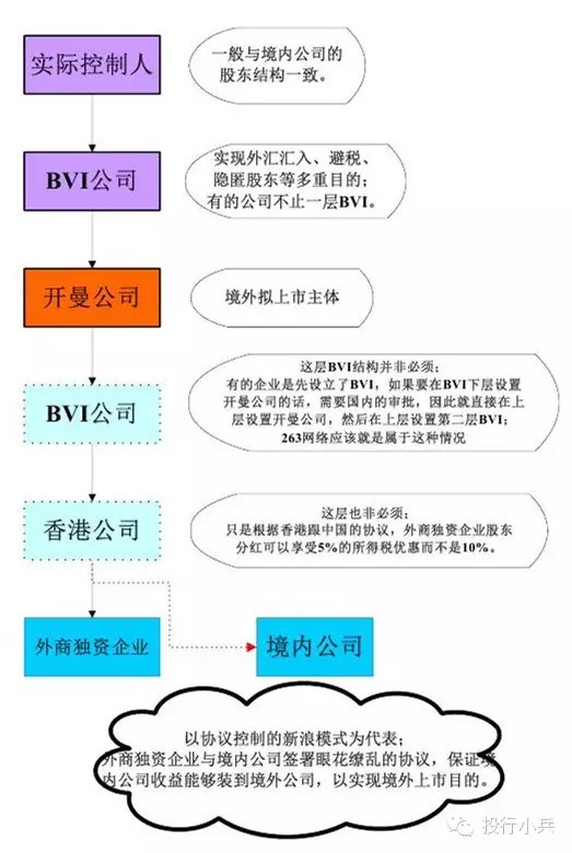 (2)这里也列示了两种典型的红筹架构的模式,一种是外商独资企业的模式(WFOE),一种是协议控制模式(VIE)。关于VIE,小兵还将在后续内容中进行专题的解读。