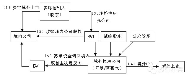 (4)关于BVI公司,通过在直接上市的海外控股公司的上下层面中合理设置BVI公司,可以起到的作用主要有:方便大股东对上市公司的控制;可以使公司管理层及某些股东绕开禁售期的限制;可以享受BVI公司所得税低税率的待遇;当公司业务有变时,可通过出售BVI公司的形式放弃原有业务,享受BVI公司的税收待遇。应该说拟上市主体开曼公司上层一般情况下都会有BVI公司,除了上述比较优惠的政策外,还有一个很重要的原因就是:如果开曼群岛上层直接是实际控制人,那么股东在上市公司的分红按照“75号文”必须在180天之内汇入境内,而如果中间有BVI公司,那么就可以很好的规避这一规定,至今这都是一个灰色地带。另外,BVI公司的股东可以相对不是很透明,在隐藏问题股东方面也有很好的优势。