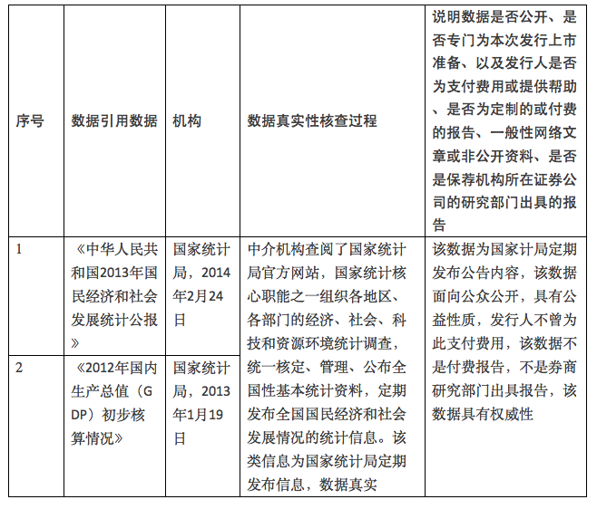 5.《反馈意见》问题十三:招股书中引用了相关行业数据,请保荐机构和发行人律师核查数据的真实性;说明数据引用来源,说明数据是否公开、是否专门为本次发行上市准备、以及发行人是否为此支付费用或提供帮助、是否为定制的或付费的报告、一般性网络文章或非公开资料、是否是保荐机构所在证券公司的研究部门出具的报告。