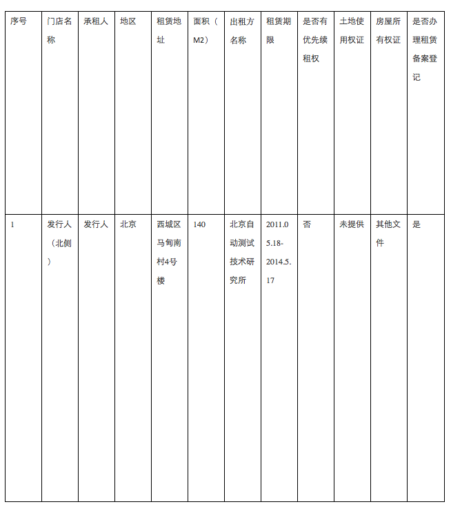 1、截至 2012 年 6 月 30 日,发行人及其全资子公司已开业门店共 32 家(含部分门店办公场所),涉及 34 处租赁房产。租赁房产相关具体情况如下: