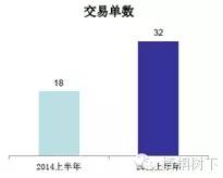 注:2014年上半年与2015年上半年的交易,指最新发布日期在2014年与2015年1月1日至6月30日的已完成重大资产重组交易,未包括不需重组委审核的非重大资产重组交易。