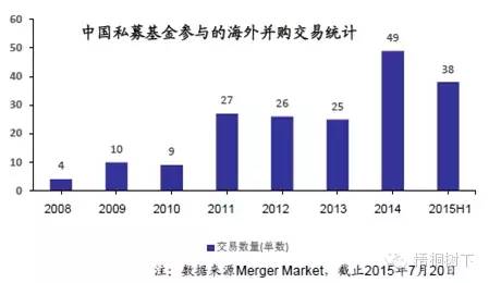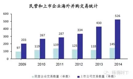 (2)民营企业异军突起 民营企业2014年在海外并购的交易数量和金额上的增长情况超过国有企业,成为中国企业海外并购活动中越来越重要的力量。复兴、弘毅投资等民营资本在海外收购方面日益活跃