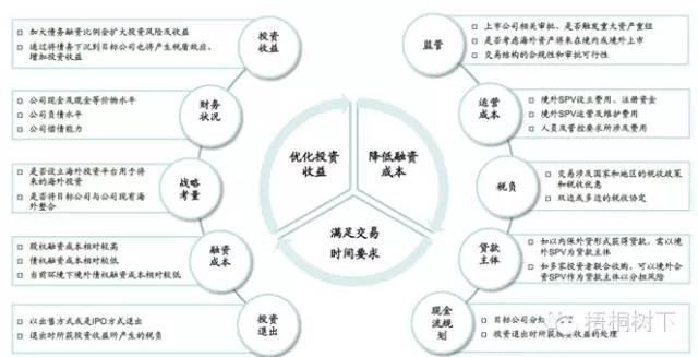 在并购实践中,需考虑众多因素以选择合理的交易架构及融资方式,达到在所要求的交易时间内,降低融资成本且优化投资收益的目的