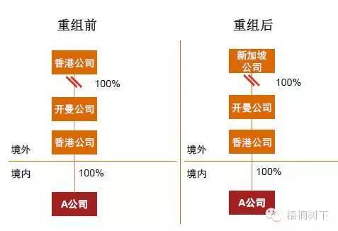 重组前,香港公司通过开曼公司及另一个香港控股公司间接持有中国居民企业A公司。香港公司将所持有开曼公司股权全部转让给新加坡公司。