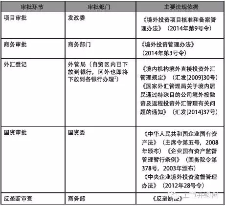 2014 年10 月,工信部、证监会、发改委、商务部联合制定了《上市公司并购重组行政许可并联审批工作方案》,不再将发改委实施的境外投资项目核准和备案、商务部实施的外国投资者战略投资上市公司核准、经营者集中审查等三项审批事项,作为中国证监会上市公司并购重组行政许可审批的前置条件,改为并联式审批。