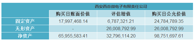 旋极信息聘请中天华对西安西谷于购买日的各项资产和负债进行评估,确认西安西谷于购买日各项可辨认净资产的公允价值,具体是以西安西谷截至2014年12 月31 日经审定后的账面净资产为基础,中天华对西安西谷的100%股权进行评估,可辨认净资产评估值为98,751,697.61 元, 净资产公允价值和账面价值的差异主要为固定资产和无形资产的增值。